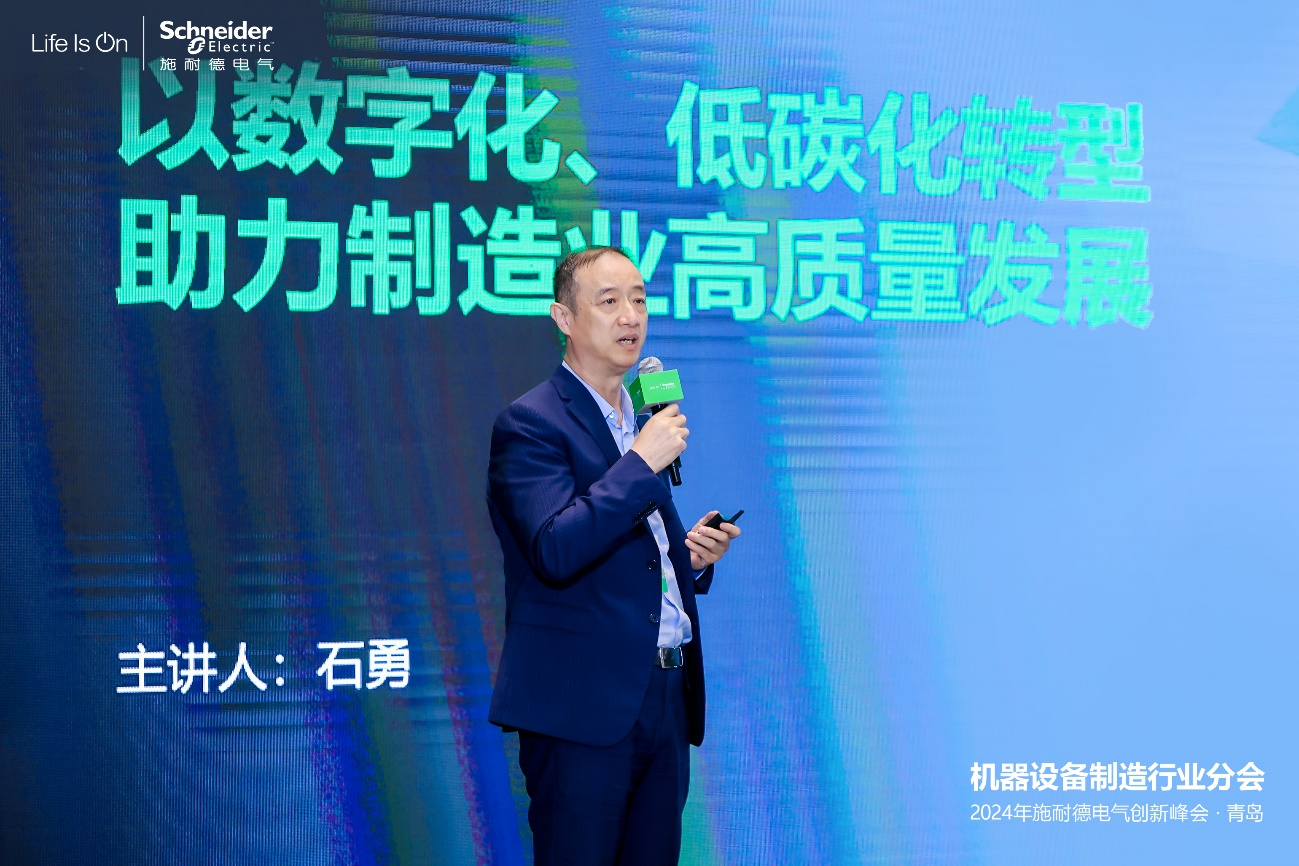 6月6日,汇聚创新洞察与前瞻观点的“双擎并进,数智新生”2024年施耐德电气创新峰会在青岛盛大举行。在本次峰会的机器设备制造行业分会上,机械工业信息研究院产业首席专家、工信智库联盟副理事长石勇指出,数字化浪潮正推动制造业形成新的价值创造体系;同时绿色化成为重要而活跃的经济增长新动能;数字化、低碳化“双转型”将成为锻造制造业竞争力的重要手段。