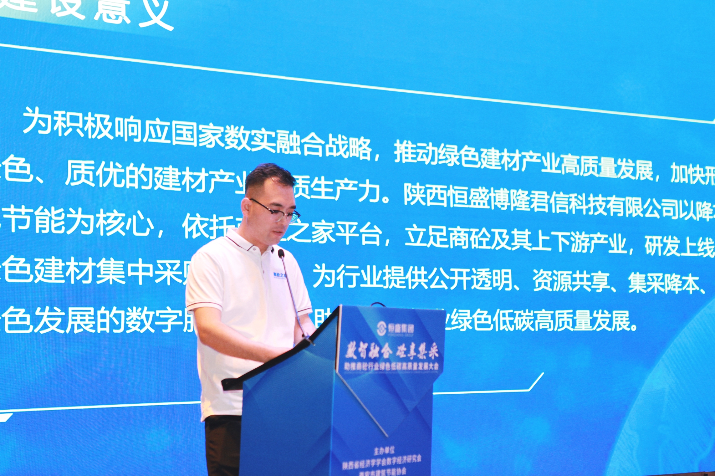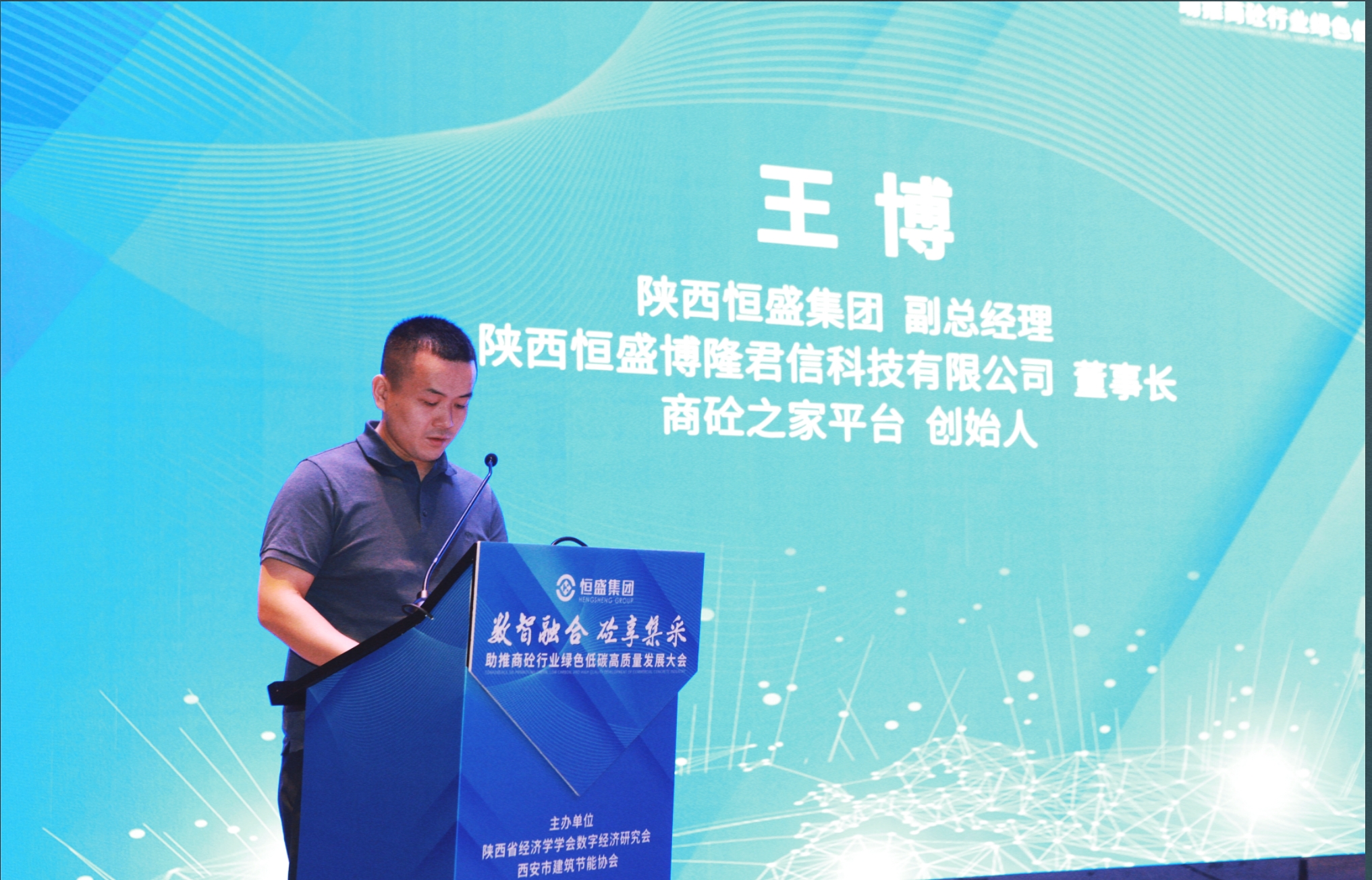 陕西恒盛博隆君信科技有限公司董事长、商砼之家平台创始人王博做大会致辞。他指出,此次大会是积极响应国家数实融合发展战略,推动数智化赋能绿色建材产业高质量发展,加快形成创新、绿色、质优的建材产业新质生产力的一次盛会。大会重点推介的“砼享集采·绿色建材集中采购平台”是为商砼行业量身定制的一个数字服务平台,他从产业链需求端和供应端分别阐释了平台帮助用户降本增效、提升竞争力,推动产业绿色低碳发展的核心价值。王博表示,未来恒盛将持续优化升级砼享集采平台,以“砼享集采联盟”为核心依托,以商砼之家平台为载体,以共享工厂为支撑,赋能联盟客户实现“产供销+金融+智慧物流”一体化服务,打造“联盟共创 共享共赢”新模式,推进商砼产业高质量发展,为构筑完整、开放、绿色、数智的建材产业新生态贡献力量。
