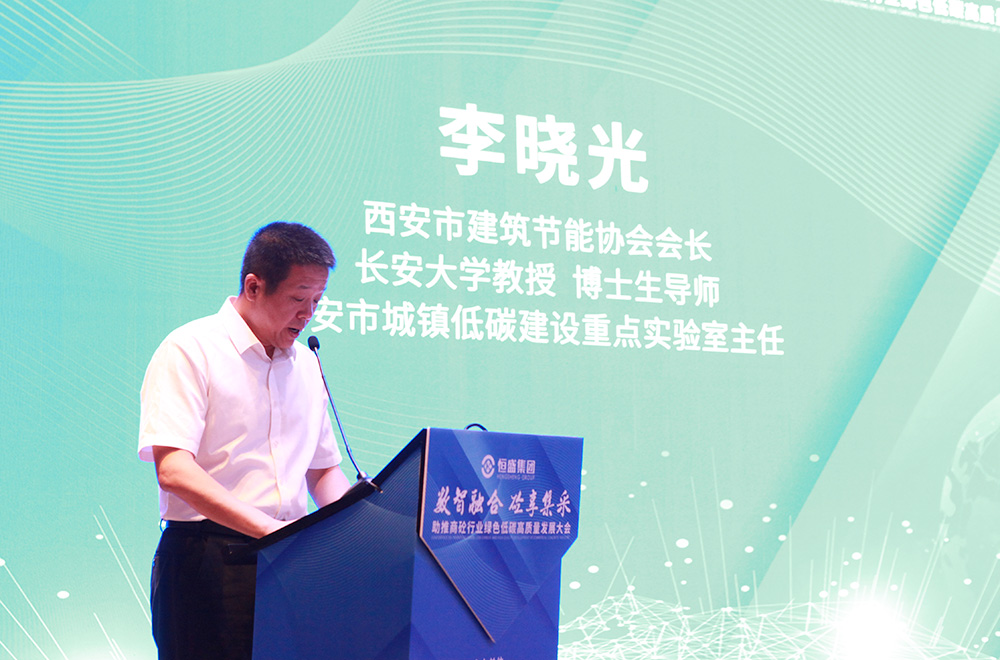 西安市建筑节能协会会长,长安大学教授、博士生导师,西安市城镇低碳建设重点实验室主任李晓光在致辞中指出,数字化转型对于商砼行业而言,不仅是提升自身效率、降低成本的有效手段,更是推动行业向绿色低碳转型,实现高质量发展的关键驱动力。近年来,以陕西恒盛集团为代表的重点领军企业积极响应国家数实融合发展战略,为推动数字化赋能产业高质量发展,加快形成新质生产力,增强发展新动能做出了深度的实践探索,并取得了积极的成效。本次大会主题紧扣“数智融合 砼享集采”,不仅是一个宣言,更是一种行动的召唤,是我们对行业未来的期许。希望所有同仁共同参与、共同融入、共同推动,以数实融合为桥梁,以绿色低碳为使命,共同开创商砼行业绿色低碳高质量发展的新篇章。