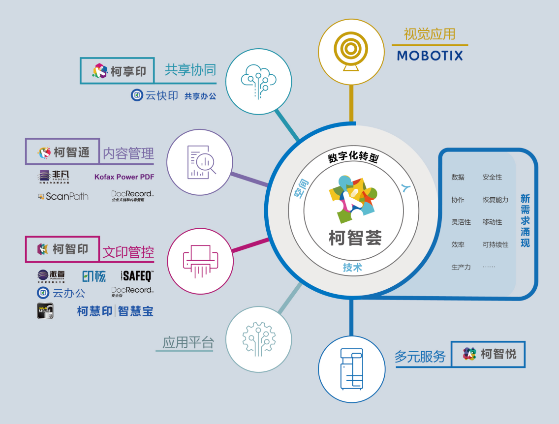 “柯享印”是柯尼卡美能达智能互联工作空间(Intelligent Connected Workplace, 以下简称“柯智荟”)的重要组成部分。柯智荟是柯尼卡美能达基于物理空间打造的一站式数字化管理平台,旨在实现 “人”、“物”、“工作空间”的有效连接,该平台涵盖文印管控、内容管理、共享协同、视觉应用及多元服务等六大领域,可充分满足各行业用户的个性化办公需求。