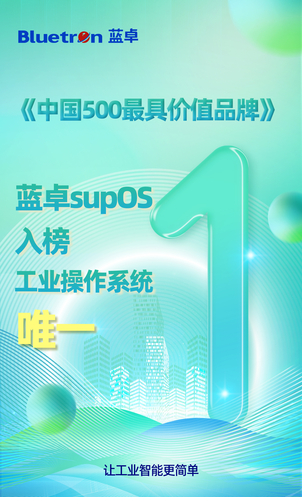 此次中国500最具价值品牌榜单中,蓝卓supOS(蓝卓数字科技有限公司)以131.65亿元的品牌价值,成为国内首个入榜工业操作系统,也是国内唯一入榜的工业操作系统。