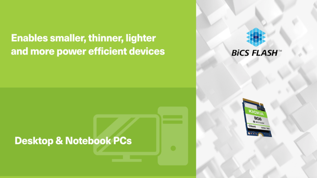 AI PC最大的特点之一是注重轻薄化,不仅要求SSD有足够的性能,也必须占用更小的空间。铠侠 BG6 系列固态硬盘在赋能助力AI PC方面展现了卓越的性能和灵活性。采用 PCIe 4.0 和NVMe 1.4c规范,搭载高达2,048 GB的KIOXIA BiCS FLASH第6代TLC闪存,其中最小尺寸只有M.2 2230,即使平板型笔记本也不在话下。在未来,第8代KIOXIA BiCS FLASH QLC闪存也将蓄势待发,为移动设备存储容量和性能提供了更多可能性。