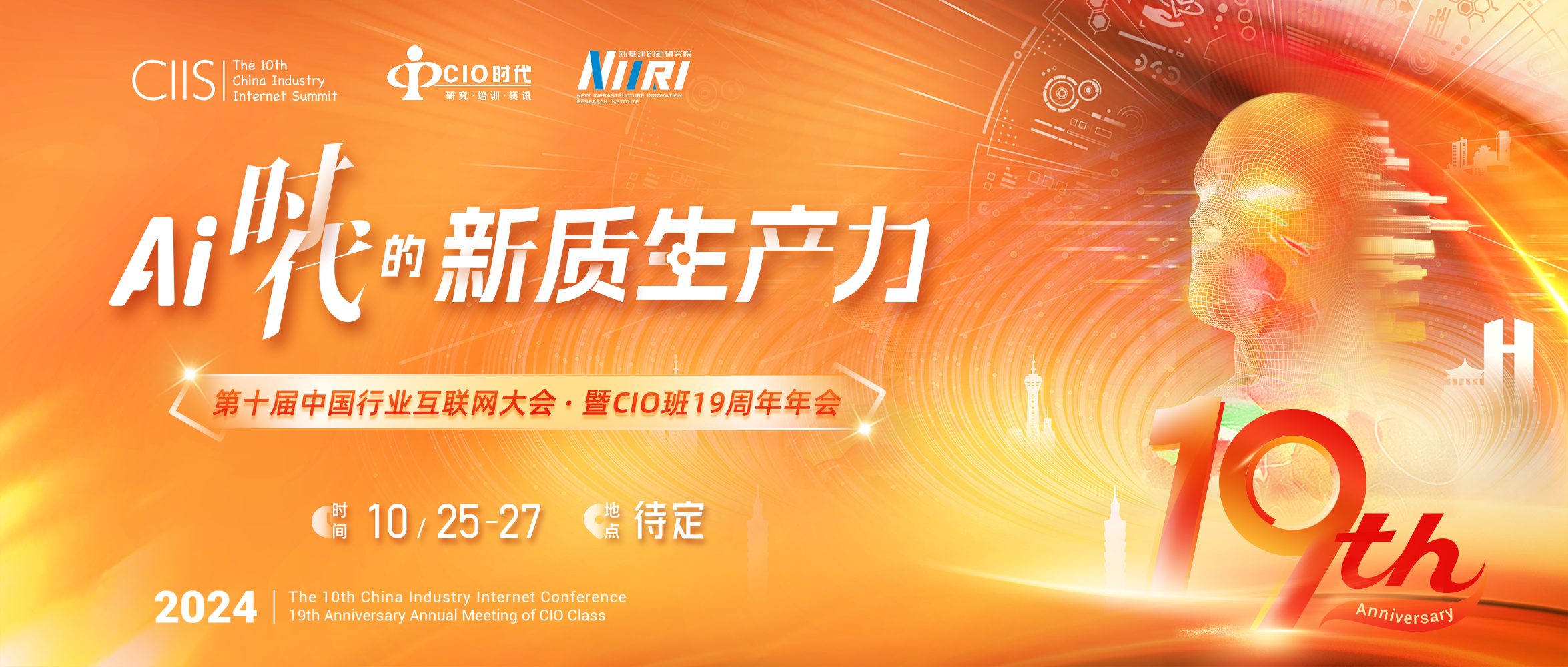 在以上大背景下,由CIO时代主办,新基建创新研究院作为智库支持的第十届中国行业互联网大会暨CIO班19周年年会将于10月25-27日隆重召开,届时我们将邀请知名专家学者、各届CIO班学员、知名企业CIO、CSO等500+嘉宾共同参与,聚焦“AI时代的新质生产力”,深入探讨加快培育和发展新质生产力的创新发展之道。