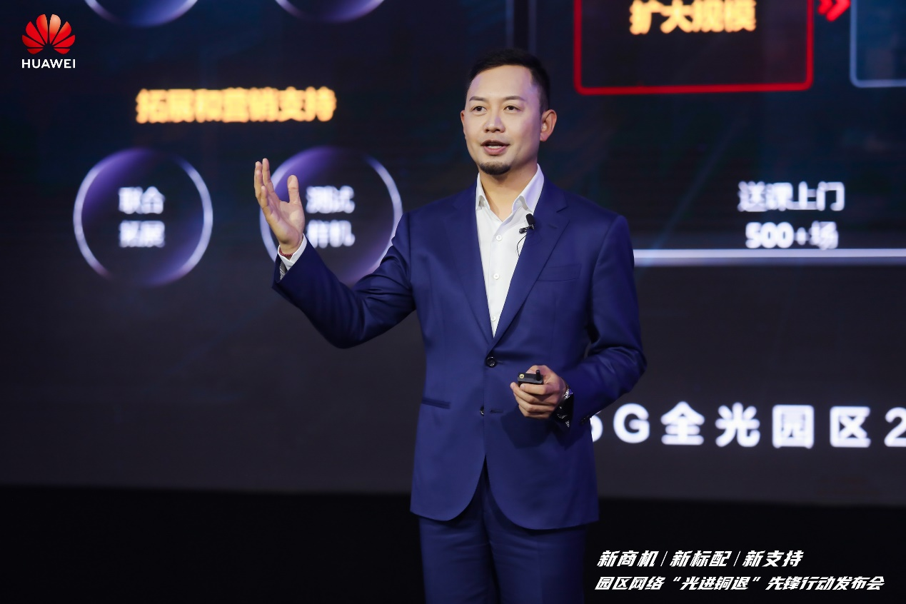 面对商业市场的高速增长,华为始终坚持伙伴主导,发布园区网络“光进铜退”先锋行动,就是希望联合新老伙伴做大行业纵深,扩大市场覆盖,实现商业共赢。对此,华为中国政企CMO邱恒表示,华为将投入5000万元营销资源支持园区网络“光进铜退”先锋行动,将沿着销售的全生命周期,全方位支持新老伙伴,挖掘商机,突破项目,扩大规模,并实现能力的提升。包括面向57+价值地市全面投放广告,让更多区域客户了解全光园区;通过8辆展车、19+对话室资源、伙伴三朵云等丰富多维的营销阵地,让伙伴更好地与客户展开沟通交流;开放 20 +样板点,让数智园区“眼见为实”。同时,华为在亿企智仔小助手也将同步入驻伙伴微信群,通过样板点介绍、资讯分享和社群福利发送等,激活社群,助力伙伴培育更多新商机;还将带来500+场赋能,通过全国线上直播、省维度1-N线下赋能、1V1送课上门等多种方式,实现伙伴能力加速升级。