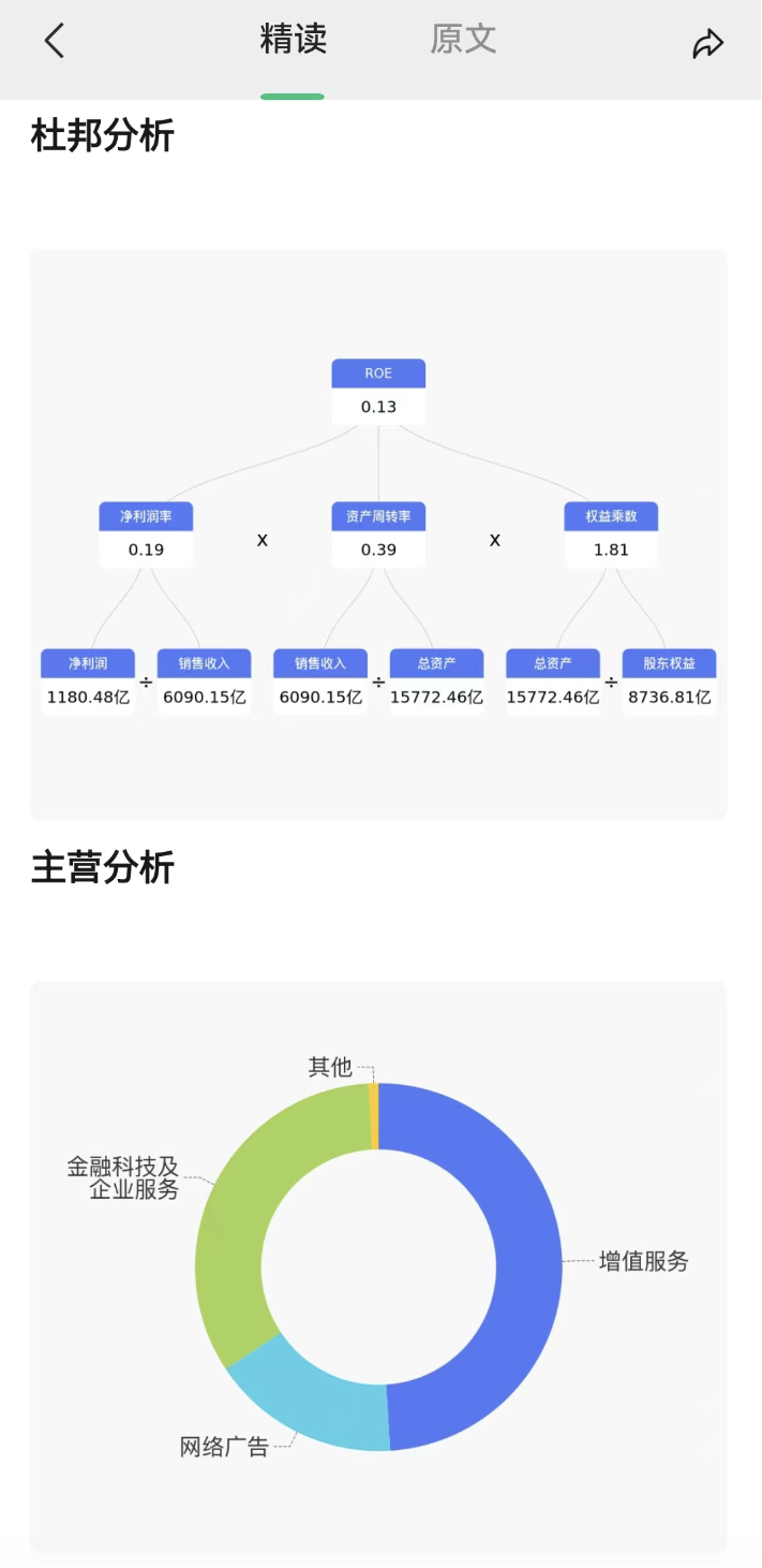 对于财务数据多、理解门槛高的财报及研报,腾讯元宝从核心信息、关键问题及回答、财务分析等多个维度梳理,可根据财报内容生成杜邦分析图等专业图表,让企业的财务状况更加可视化。针对大模型在进行数值计算时可能出现的误差,元宝在解码过程中集成了计算器功能,确保根据准确的计算结果来生成答案。