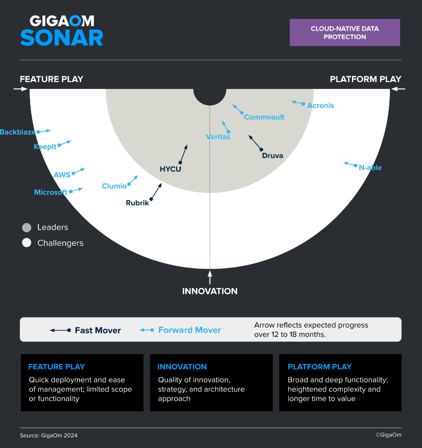 GigaOm声呐报告根据供应商的执行力、路线图和创新能力对其进行评估。Commvault提供前沿解决方案和技术,真切地为全球客户带来了变化,并因此获得了认可。