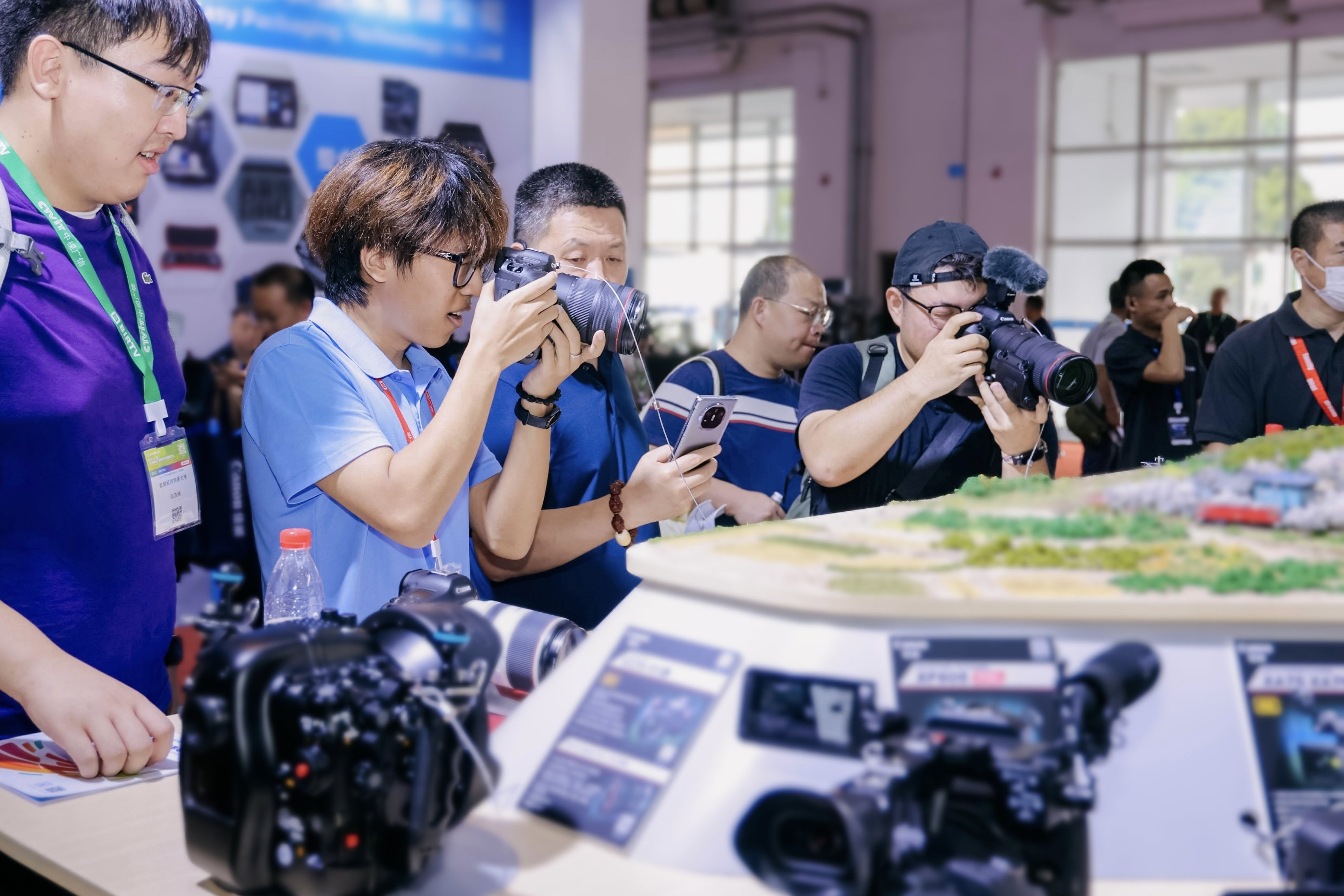 融媒体的发展使得新闻内容的传播方式更加多样化,社交媒体、短视频平台等新兴媒体也成为了新闻内容传播的重要渠道,这些渠道对于新闻素材的要求更加多样化和碎片化,而小型化设备则能够更好地适应这种需求。佳能两款全画幅专微相机新品EOS R1与EOS R5 Mark II在现场颇受关注,两款产品的视频系统与CINEMA EOS电影系统影像风格一致,搭配大光圈HYBRID镜头RF35mm F1.4 L VCM 在内的众多RF镜头,为广播制作领域、中小型视频工作室以及个人创作者都提供了更多选择。