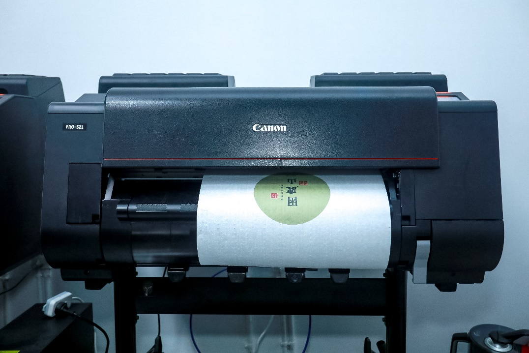 在打印品质方面,佳能imagePROGRAF-PRO系列打印机采用更具张力的LUCIA颜料墨水,能够抑制墨水扩散造成的晕染现象,提高文字线条的流畅性和清晰度,即使在无涂层纸张上也能够再现更加清晰、锐利的文字和图像,还可以使墨水大多保留在纸张图层表面,赋予画面更生动的色彩表现力。此外,LUCIA颜料墨水在防水性、耐光耐候性、抗剐蹭性等方面都有很大优势,确保在运输和长时间保存过程中都能维持良好的印品品质。佳能imagePROGRAF-TM系列打印机则以精准的墨滴控制技术,解决了棉纸类材料打印中的边缘毛刺问题,确保了即使在透气度高的材料上也能保持高质量输出。同时,该系列对多种打印介质的兼容性包括:光面纸、艺术纸乃至帆布、胶片等满足市场新需求的同时,为茶叶包装的创新设计提供了无限可能。