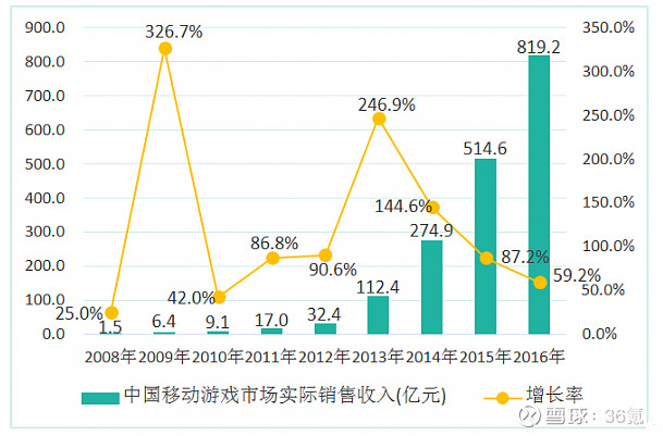 据工信部与游戏工委数据,在智能机和手游的高速发展的2010年至2016年间,国内智能机存量从1.5亿增长至23.3亿,中国移动游戏产业收入则一路从9.1亿元涨到819.2亿元。