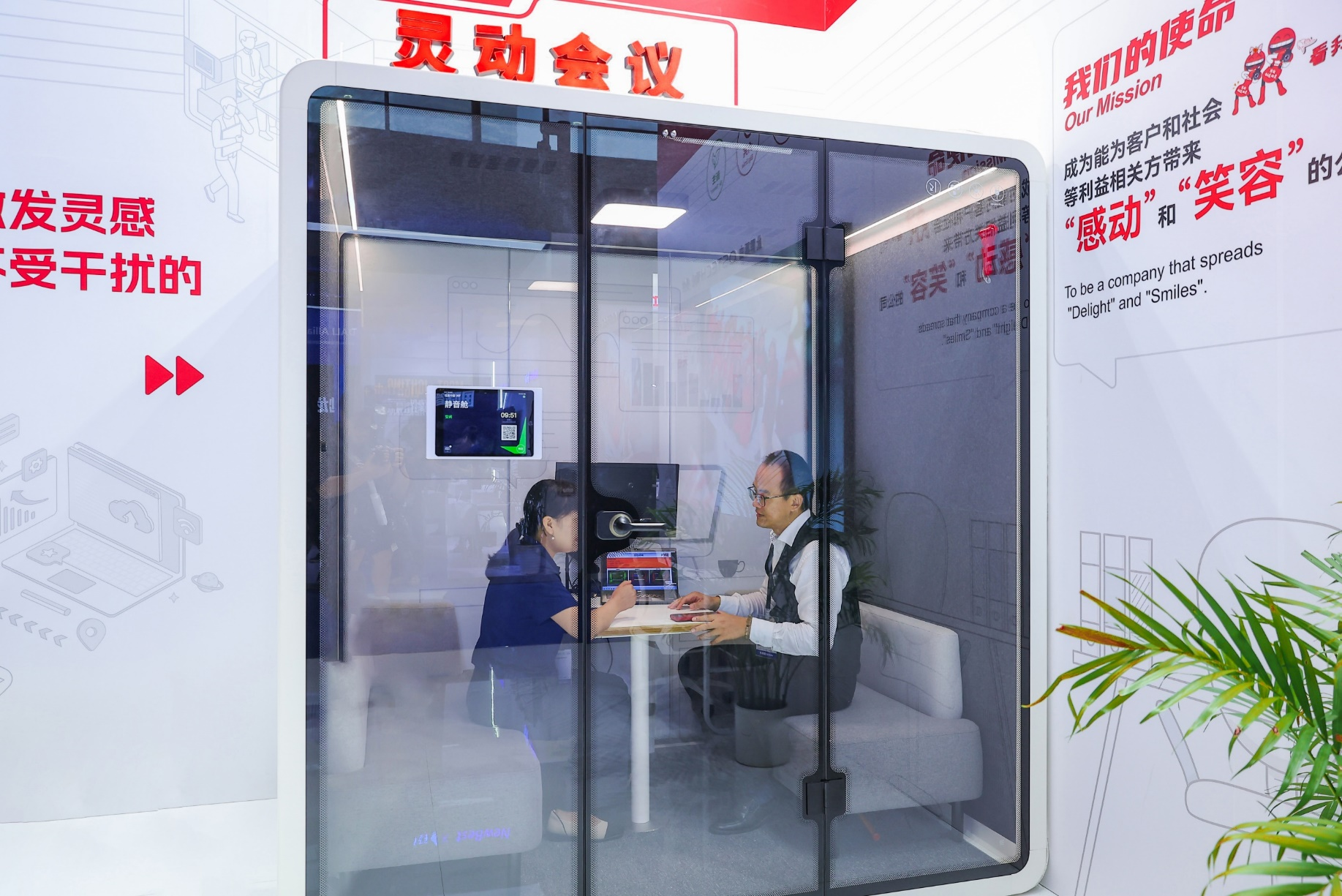 集合了由静音舱、会议预约系统、音视频一体机设备的佳能“灵动会议”解决方案