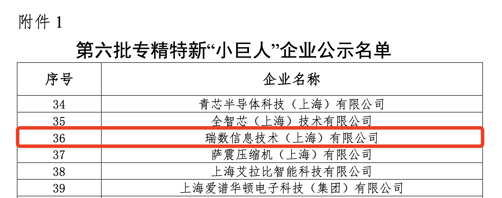 近日,工业和信息化部第六批专精特新“小巨人”企业培育名单正式发布,瑞数信息技术(上海)有限公司(简称瑞数信息)成功入选,荣获国家级专精特新“小巨人”企业称号!