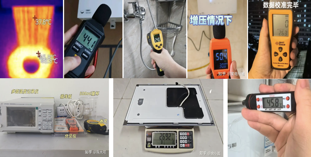 “答主评审团”结合真实家庭场景,设计单人沐浴、多点用水、长管路测试等极端场景,采用专业设备(如多通道测温仪、声级计、燃气表)历时两周持续记录数据。为了避免主观感受干扰、确保数据可复现,本次多位答主在正式开测前,都在家中进行了实装。并且搭建了自己的测试体系——从温度曲线、流量精度,到燃气消耗与噪音监测,形成了一套覆盖热工、流体与声学的完整测试框架。