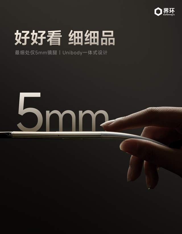 在细节方面,界环 AI 音频眼镜特别版眼镜腿采用 Unibody 一体成型结构,最细处仅 5mm,线条简洁流畅。钛金色 NCVM 镀膜与金色品牌 logo 交相呼应,辅以亲肤硅胶鼻托、光学级镜布及 “Special Edition” 金色手写体标识,尽显精致格调与个性表达。