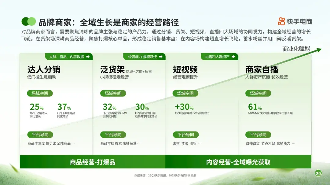 对品牌商家而言,要扎根平台生态、持续夯实品牌经营阵地,需全面布局分销、货架、短视频、直播四大场域,让好内容与好产品实现跨场域共振,构建起全域经营的增长飞轮。