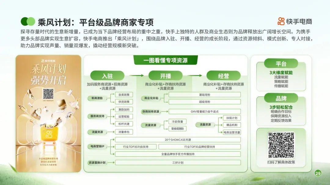 政策端,快手电商面向头部品牌推出“乘风计划”,围绕品牌入驻、开播、经营的成长阶段,通过资源倾斜、模式创新、专人对接,助力品牌实现声量、销量双爆发,撬动经营规模新突破。