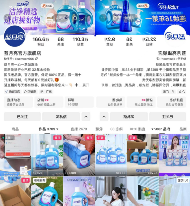 近一年,蓝月亮直播GMV位居快手居家清洁行业TOP5,官旗等品牌店铺GMV增长超100%。