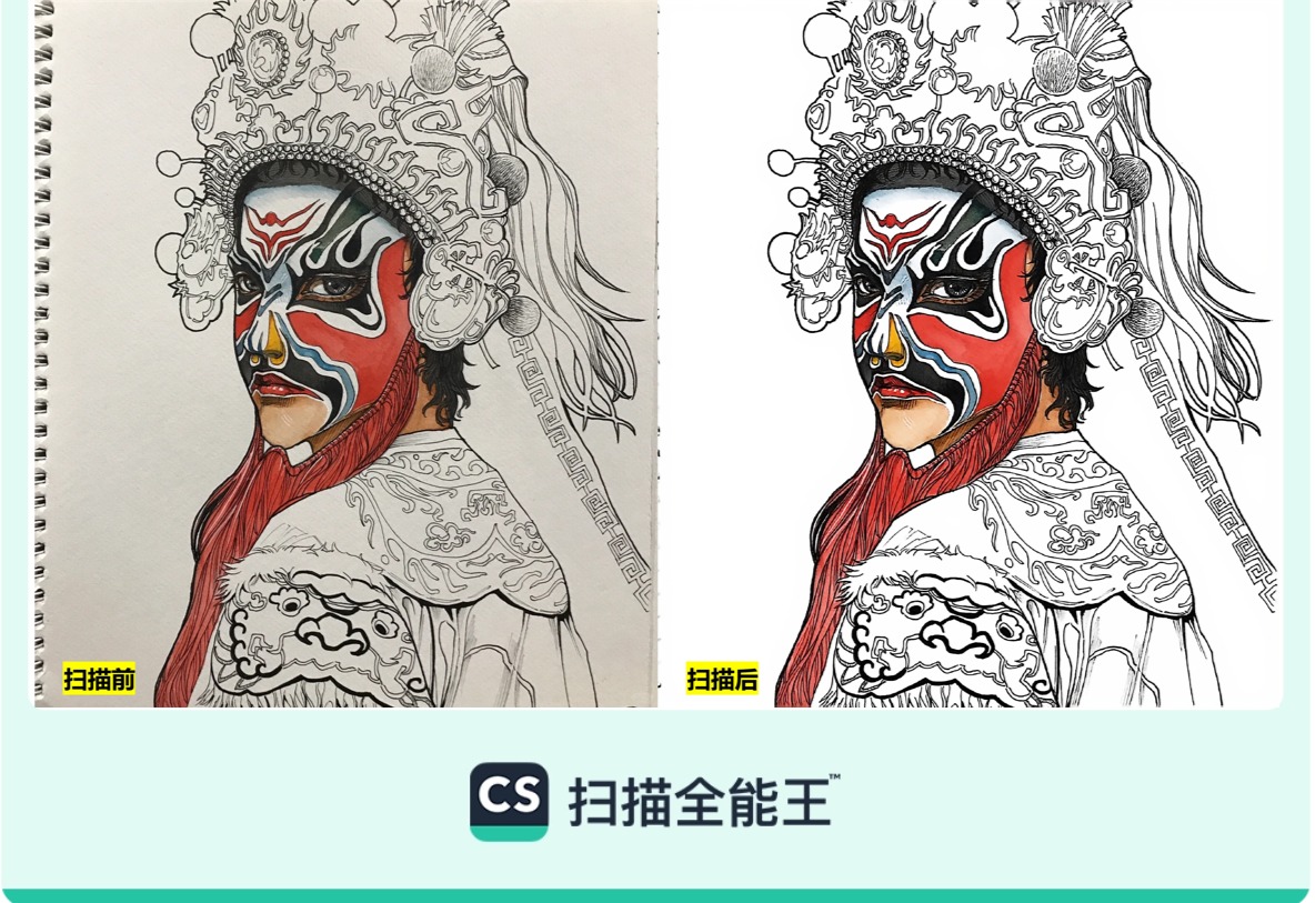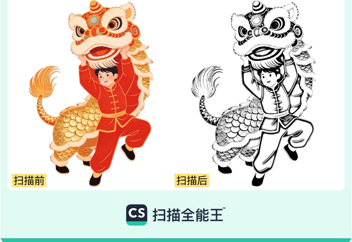 国漫的生命力,不仅来源于专业创作者,更来自大众参与。扫描全能王致力于让国漫成为人人都可“DIY”的素材。无论是泛黄的小人书,还是张贴的国风海报,用户只需随手一拍,扫描全能王可一键生成清晰的黑白线稿,方便用户临摹、填色。