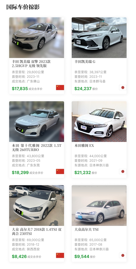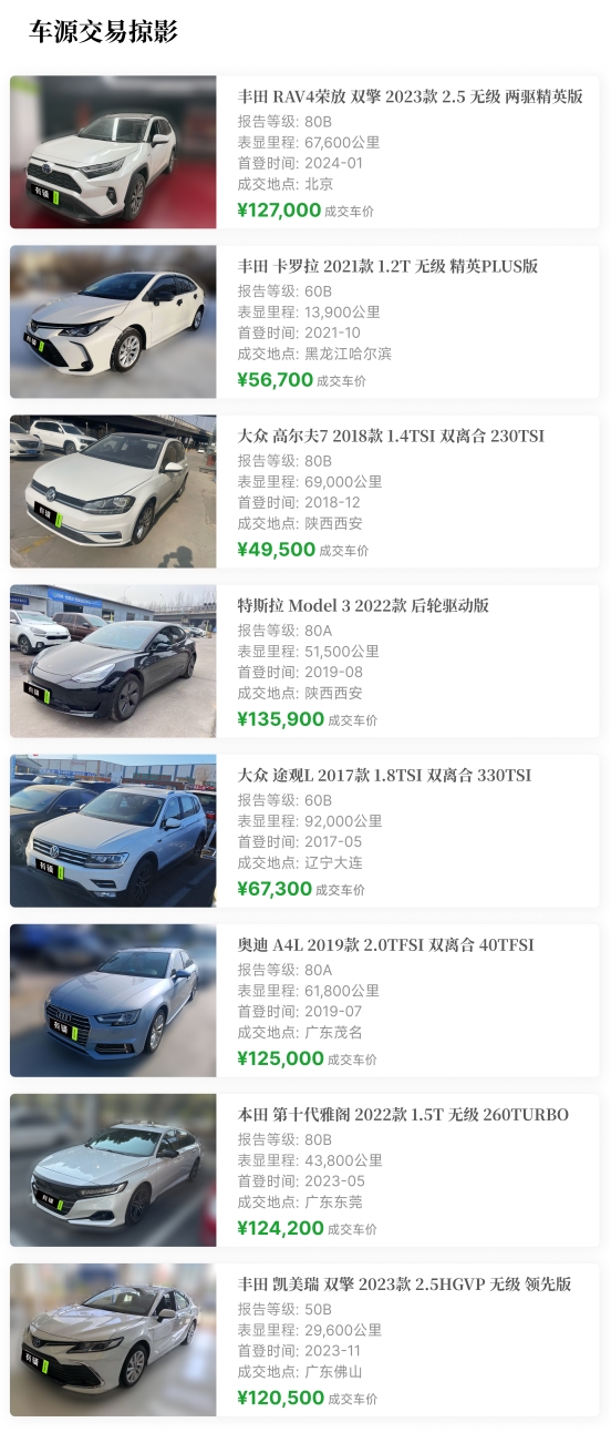 具体车型包括:中国自主品牌的长城哈弗H6、长安CS75、比亚迪宋;德系品牌的大众POLO、高尔夫、速腾、迈腾、途观、奔驰C级、E级,宝马3系、5系,以及奥迪A4、A6;日系品牌的本田CR-V、雅阁、奥德赛,丰田RAV4、卡罗拉、凯美瑞、汉兰达、威驰,日产逍客、轩逸;美系品牌的特斯拉Model Y、别克GL8、君威、昂科威,雪佛兰迈锐宝,福特福克斯。这些车型共同构成了观测市场基本面的核心参照体系。