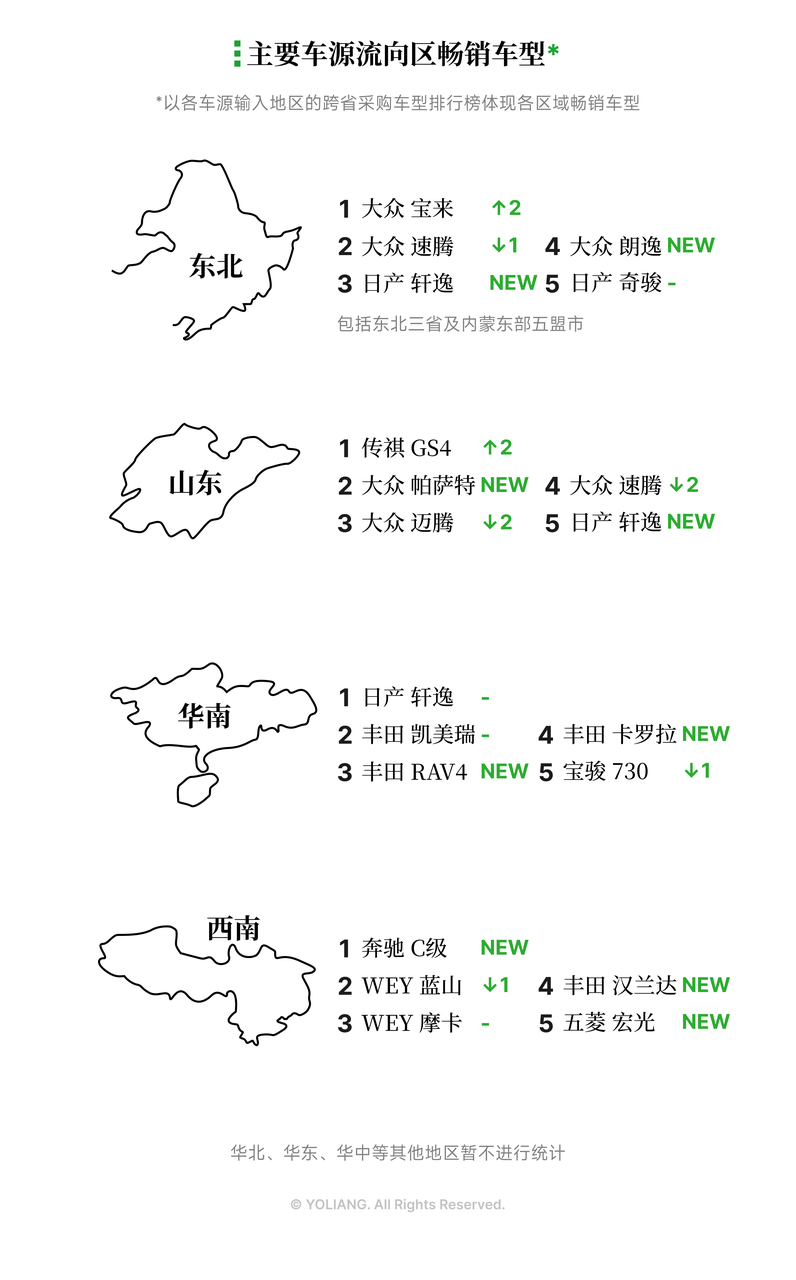 中国二手车车源的流通性持续增加,2026年中国全年二手车交易量首次突破2000万台大关,达到2010.80万辆,同比增长2.52%,跨省流通比例持续增加。有辆30指数创新型的提供“跨省流通”分析,在省级行政区跨省采购榜单中,2026年1月四川省跻身TOP 5榜单。在跨省流通畅销车型方面,日系品牌表现出了传统优势,出现在各省TOP 5采购榜单的车型8次位居第一,德系品牌车型7次位居第二。