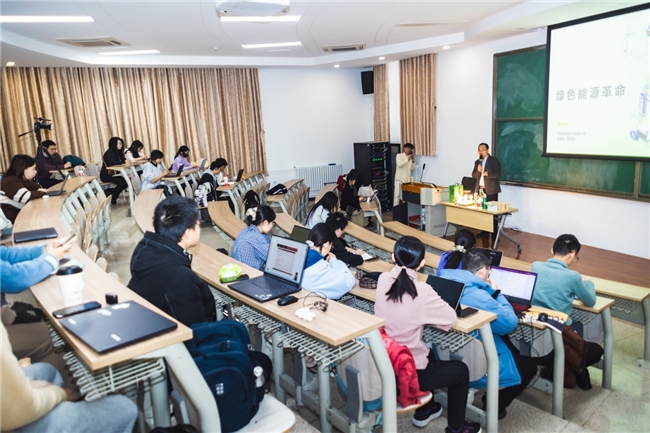 (周明强受邀走进北大为外文专业学生讲氢能产业的国际合作前景 孟涛 摄)
