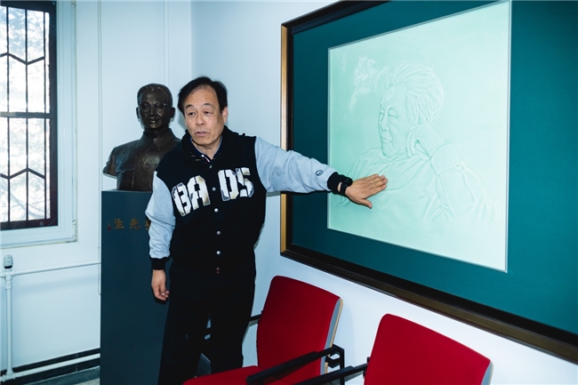 (北京大学外文学院副院长付志明为记者介绍阿拉伯语系的历史。孟涛 摄)
