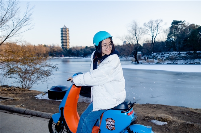 “我要去图书馆了。”夕阳的余晖下他满脸兴奋地向我点头告别,扫了一下旁边蓝色两轮车上的二维码,随着“扫码成功,请您戴上头盔”的清甜回应,车框上的头盔罩盖自动打开,他跨上车座,轻轻拧动油门,车辆平稳启动,沿着被初雪妆点过的未名湖一路往东,绕过博雅塔,载着新的梦想奔前程而去。