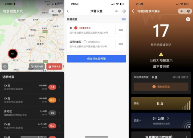 经验证发现,目前相关预警功能仅支持四川省(四川及周围 50 公里的地震信息),用户可以在微信搜索“四川地震台”公众号,关注公众号后即可开启地震预警;对于 QQ 平台,用户可以搜索并关注“QQ 全城助力”公众号,之后可以设置预警位置及烈度范围。