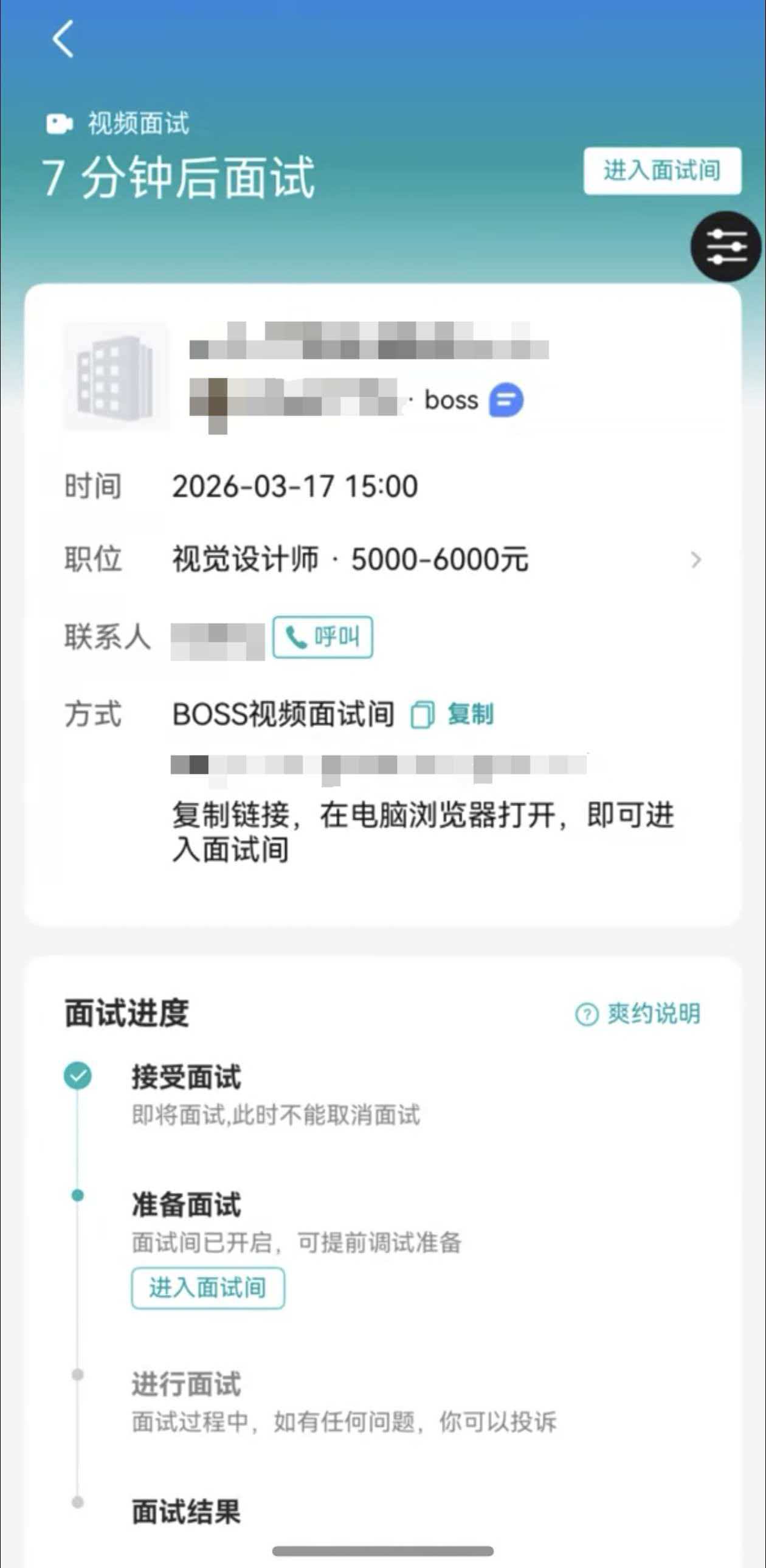 以前HR约面试,得先加微信、再发会议链接、再提醒上线……现在鸿蒙版BOSS直聘直接内置视频面试,聊天界面一键发起、一键接听,省掉中间所有折腾。