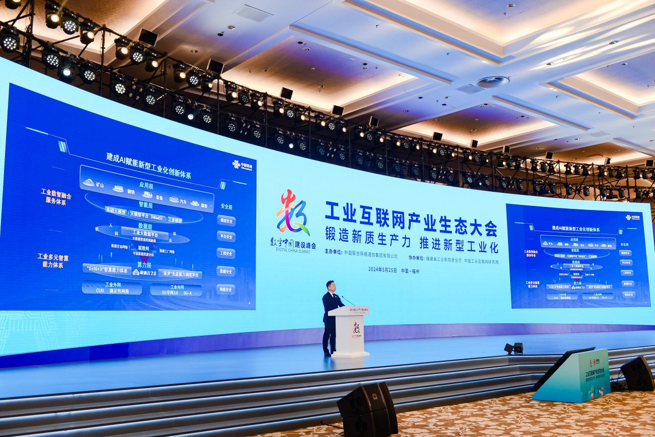 5月25日,第七届数字中国建设峰会工业互联网产业生态大会在福建省福州市成功举办。论坛由中国联通主办,福建省工业和信息化厅、中国工业互联网研究院协办。第十二届全国政协副主席、国家电子政务专家委员会主任王钦敏,国家数据局局长刘烈宏,中国联通总经理简勤,福建省委常委、福州市委书记郭宁宁出席并致辞。中国联通副总经理唐永博出席并发布中国联通AI赋能新型工业化生态共创计划。