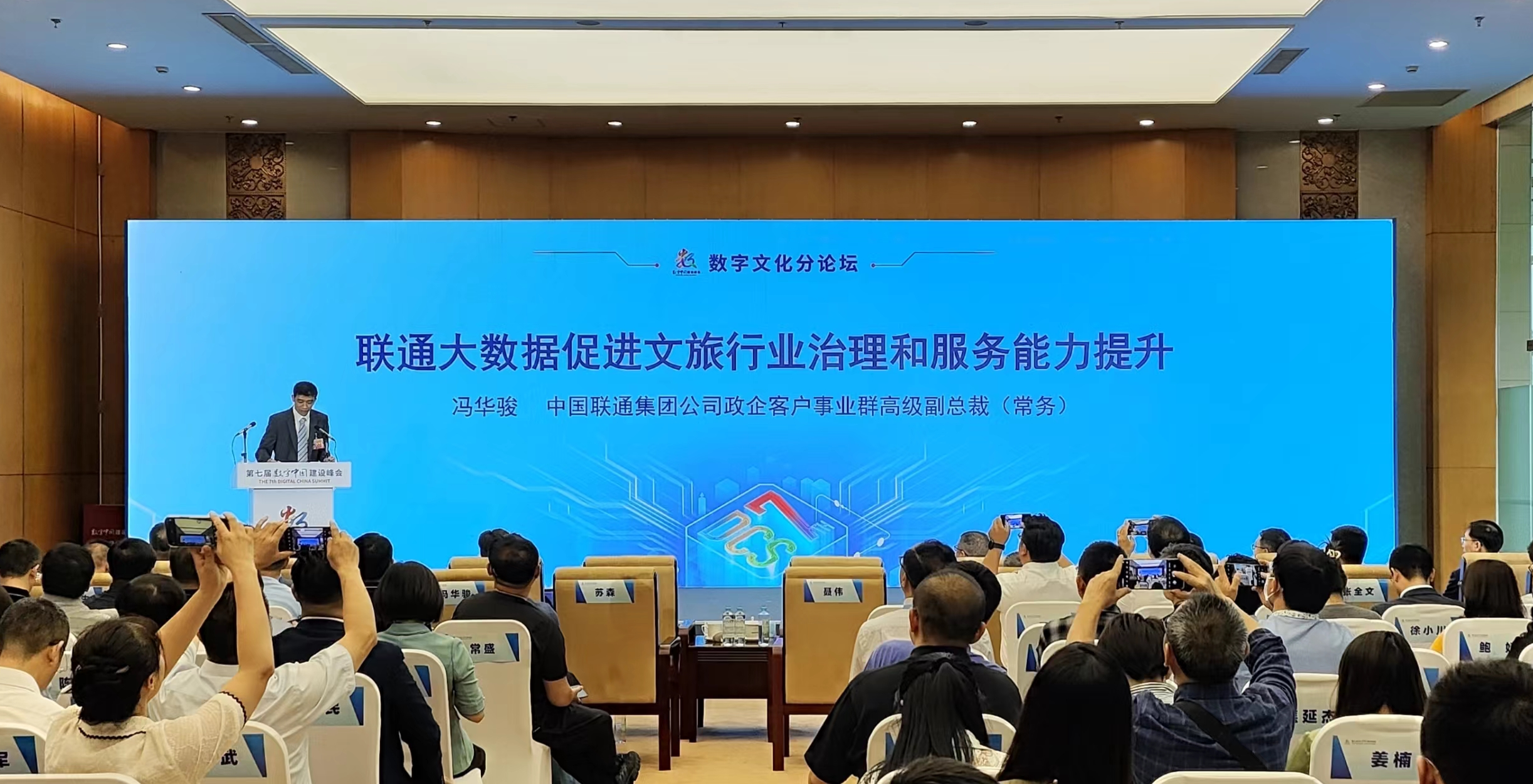 中国联通集团公司政企客户事业群高级副总裁(常务)冯华骏应邀出席并发表题为《联通大数据促进文旅行业治理和服务能力提升》的主旨演讲。