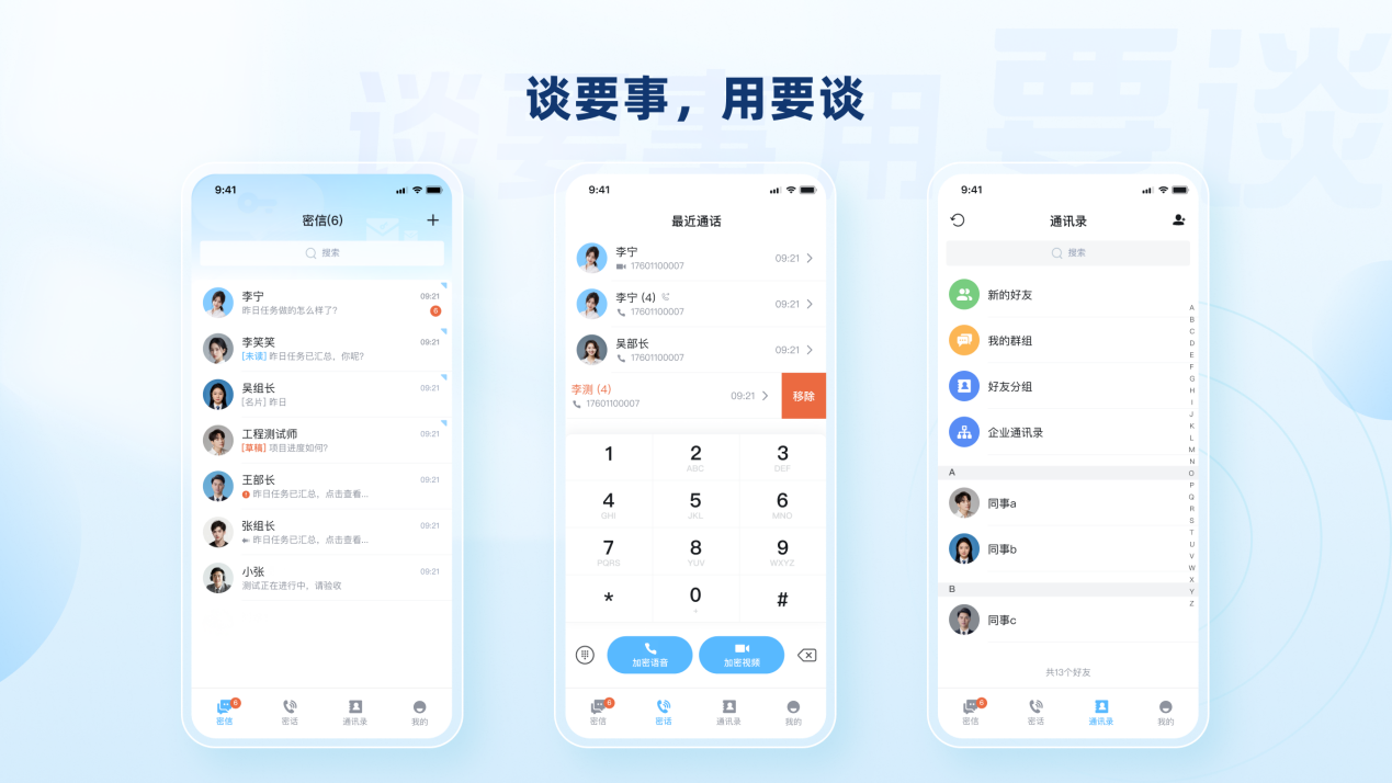 图:联通量子密信-要谈功能界面