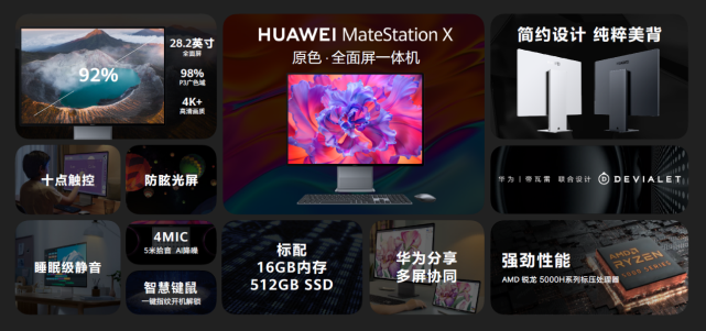 4K+触控原色全面屏,轻薄、精巧、简约的设计,全新AMD锐龙标压处理器,再配上华为PC一贯的智慧化体验,华为MateStation X作为一款智慧办公新装备,让更多消费者感受华为科技魅力的同时,也为台式机市场带来创新活力。