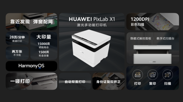 2021年9月13日,华为智慧办公新品发布会如期召开,发布会上,全球首款搭载HarmonyOS 的激光打印机——华为PixLab X1惊艳亮相。虽然这是华为推出的首款打印机产品,但凭借华为深厚的技术积累及HarmonyOS 的赋能加持,华为PixLab X1的定位不仅是一台性能优秀的激光打印机,更是一台可轻松上手,简单实用的打印机。