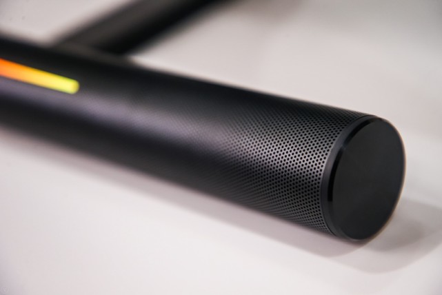 除了扬声器之外,SoundBar上还延续了炫彩RGB灯带以及触控调节功能。支持自定义灯效调节带来“游戏之魂”,梦幻而迷人。通过触摸灯带即可调节音量,并且支持双击静音,通过可视化的调节方式,提升了效率,更是带来满满的科技感。