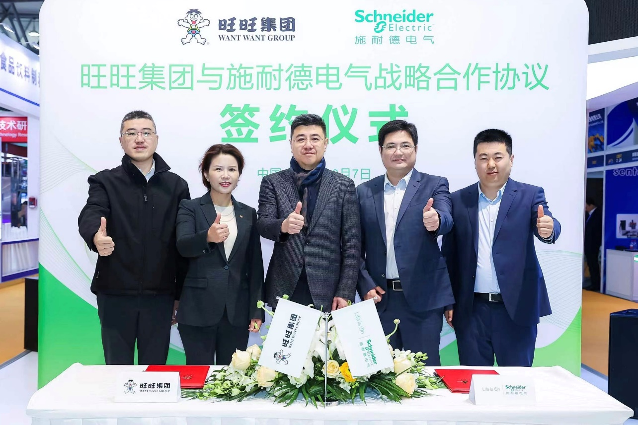 在第十二届中国国际饮料工业科技展(CBST2024)期间,全球能源管理和自动化领域的数字化转型专家施耐德电气与旺旺集团达成战略合作,围绕旺旺集团旗下生产基地-湖南总厂智能制造能源模块项目,在能源数字化领域展开深入合作。施耐德电气副总裁、工业自动化中国区OEM业务负责人崔志达,旺旺集团生产研发群曹永梅总处长,代表双方签约,中国饮料工业协会副理事长程毅出席见证。
