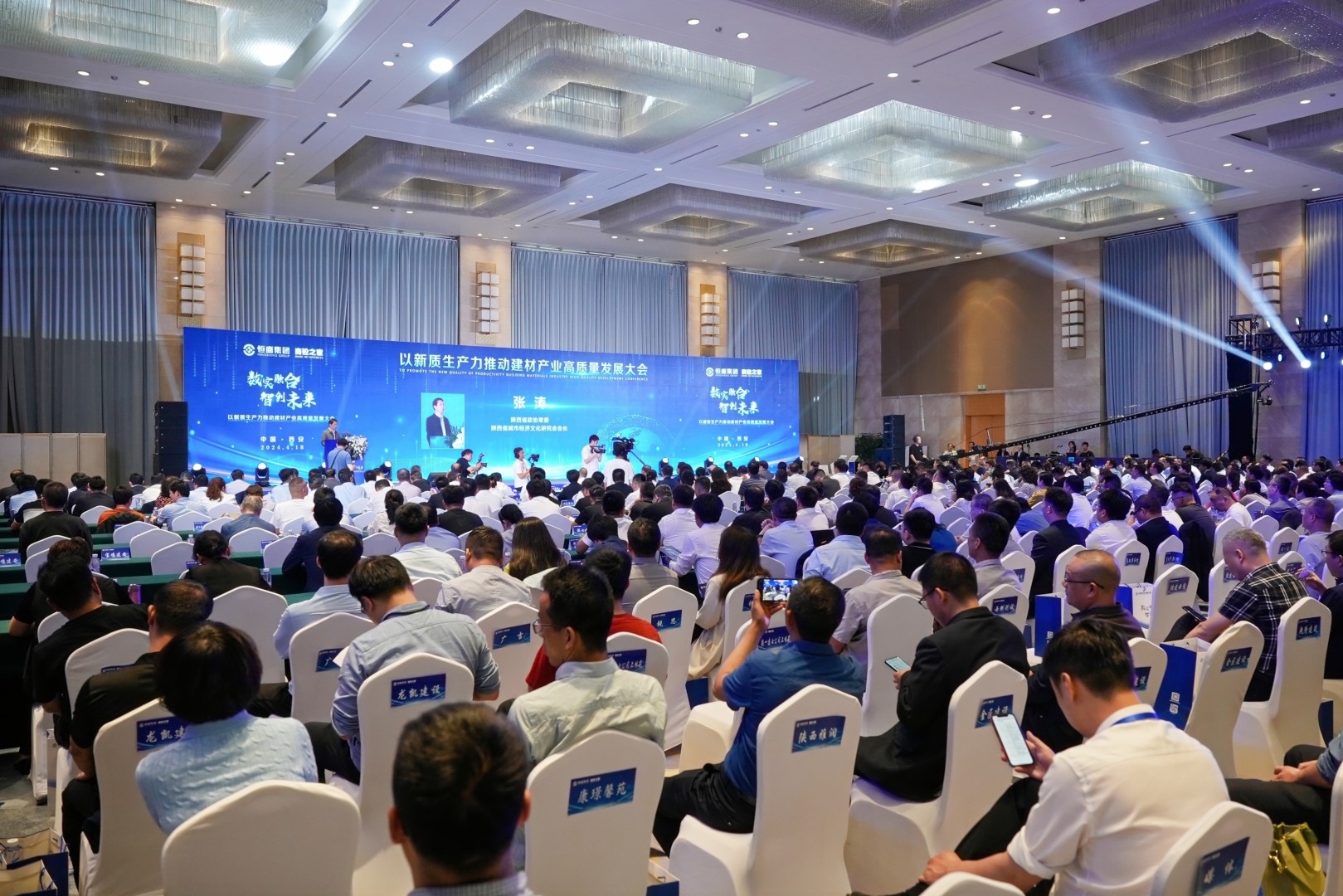 4月18日,“数实融合·智创未来——以新质生产力推动建材产业高质量发展大会”在陕西宾馆盛大召开。大会由陕西省工业和信息化厅指导,西安市数据局、陕西省区域大数据产业协会、陕西省城市经济文化研究会主办,陕西恒盛产业数字化研究院、陕西省经济学学会数字经济研究会、西部数字经济研究院、西安市建筑节能协会、西安市雁塔区科技和工业信息化局承办,旨在深入贯彻习近平经济思想、响应国家数实融合发展战略、培育壮大新质生产力等相关要求,进一步落实陕西省数字经济大会精神,助力数实融合发展、推进产业化数字化高质量发展。来自政府部门、行业协会、专家学者、企业代表及精英媒体等500多人莅临大会现场。会议由陕西省城市经济文化研究会会长张涛主持。