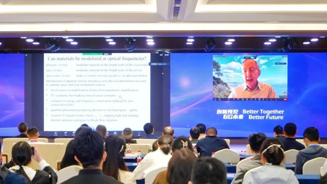 “超材料之父”、伦敦帝国理工学院教授John Pendry则在演讲中分享了一类超材料——时间调制超材料的研究进展。他认为,时间维度将给超材料带来极大的机遇,有机会在一个周期的时间尺度内改变超材料特性,因此时域变化的超材料更有可能先实现。
