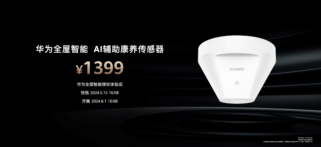 据了解,华为全屋智能AI辅助康养传感器于2024年5月15日16:08,在华为全屋智能授权体验店开启预售,单品建议零售价1399元。