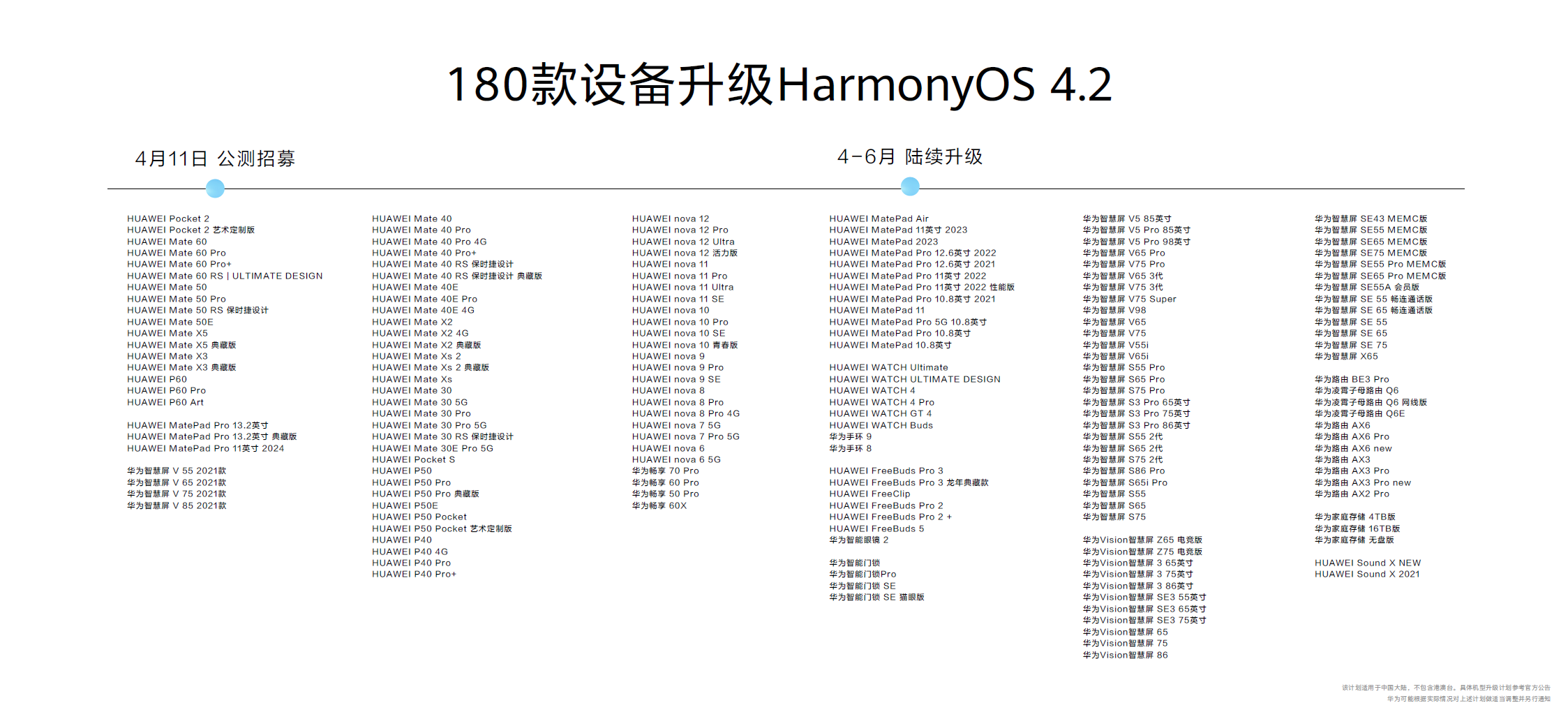 2024年5月15日,华为常务董事、终端BG董事长、智能汽车解决方案BU董事长余承东在华为夏季全场景新品发布会上宣布,HarmonyOS 4.2已升级用户超2000万,用户满意度提升11%。HarmonyOS 4.2在互动主题、AI智慧体验、流畅性能、纯净安全等方面全新升级,会上余承东宣布将有180款产品陆续升级HarmonyOS 4.2。