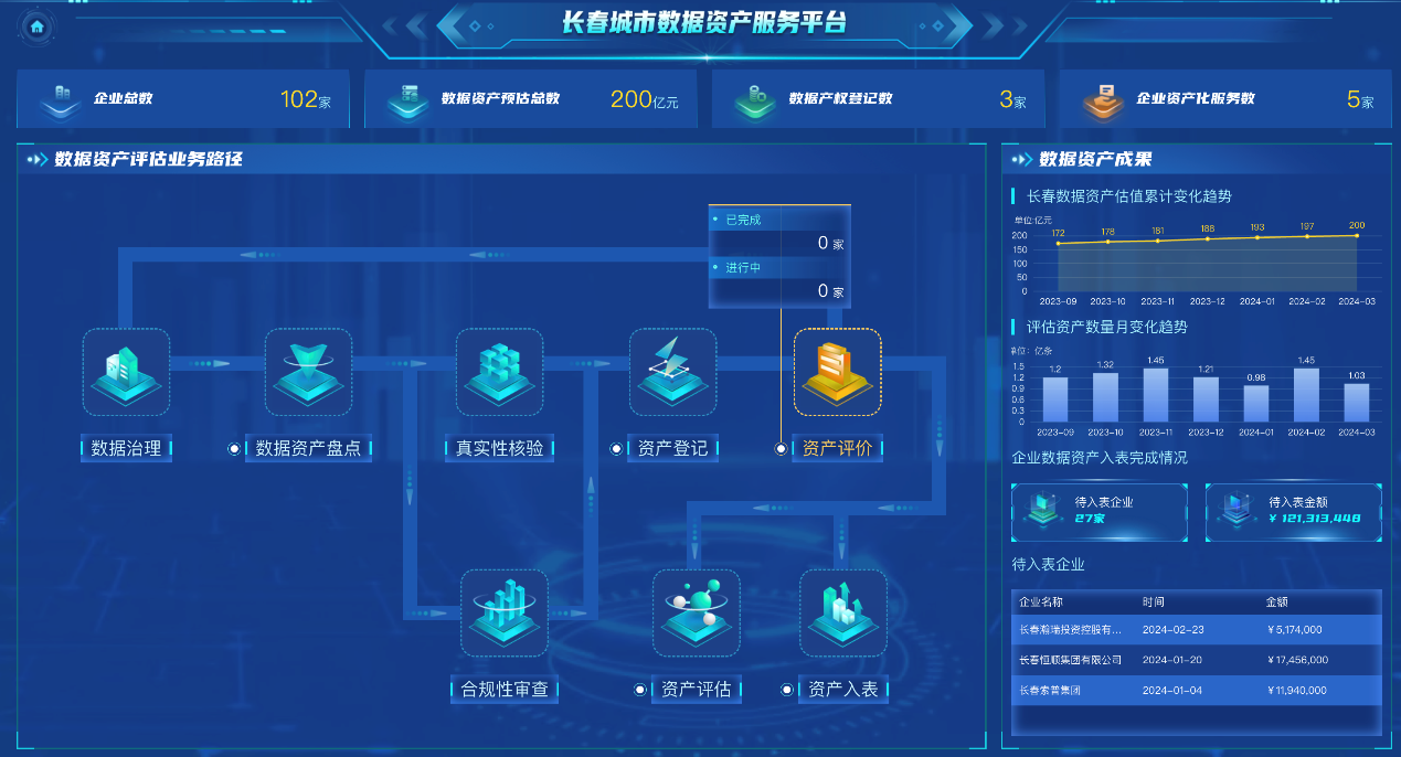 长春市数据资产服务平台的上线是中国电子云深入贯彻国务院国资委要求,服务东北振兴的务实举措,也是央地共创数据资产服务合作模式的全国第一站。“城市数据资产服务平台”将为长春市各级政府、各界企业提供城市级统一的数据盘点、数据资产登记、数据资产入表、数据资产运营、数据资产融资、数据资产统计和监管等数据要素全链路服务流程。