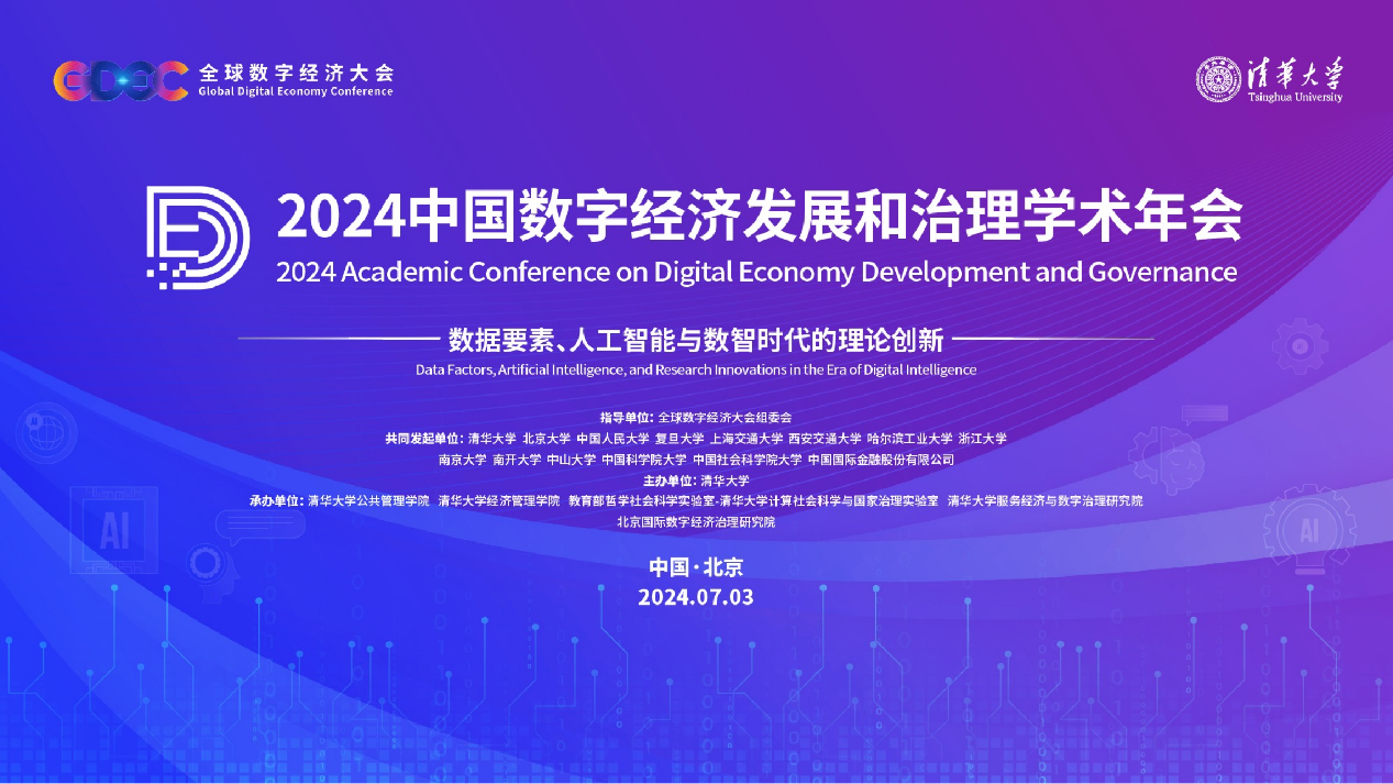 中国数字经济发展和治理学术年会是全球数字经济大会的一个重要版块,由全球数字经济大会组委会联合清华大学、北京大学等13所高校及有关机构共同发起,旨在成为中国数字经济领域学术交流的重要平台和学术网络,通过汇聚国内外顶尖专家学者聚焦数字经济发展与治理中的前沿问题,开展基础性、理论性和前瞻性的研讨,共同探索构建中国数字经济自主知识体系,谋划中国数字经济发展与治理的新篇章。