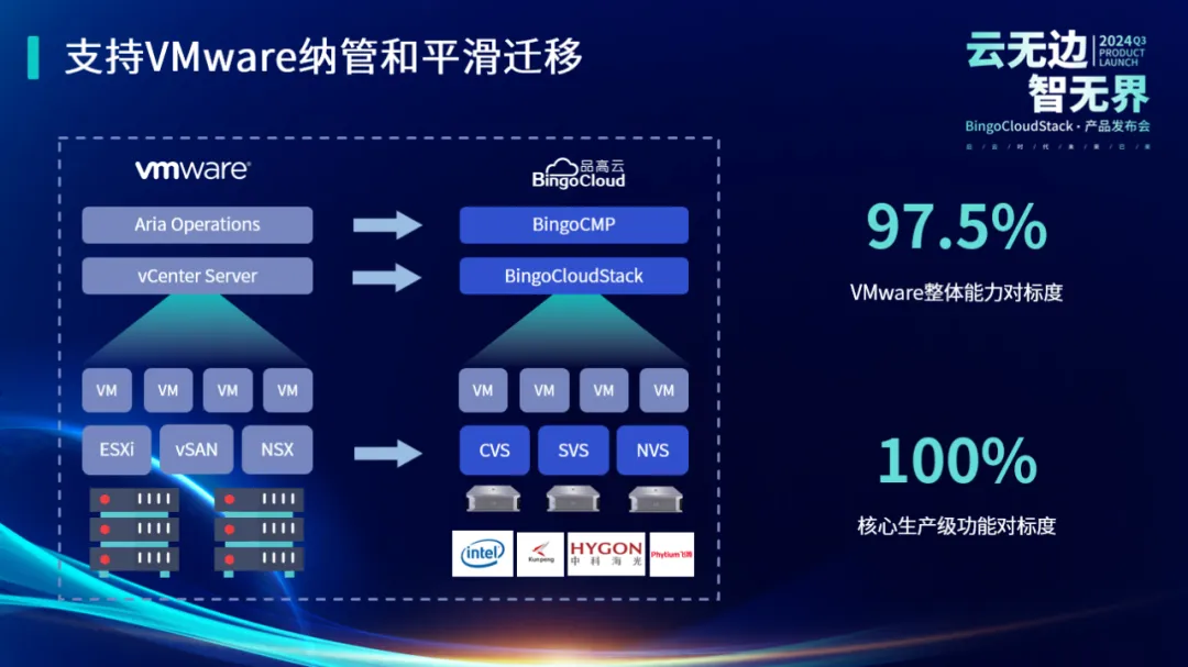 l 100%覆盖VMware核心功能,进一步为用户提供更丰富的云平台能力。助力企业用户完成云化、数字化转型和智能化转型。