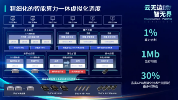 品高坚定地认为云计算和人工智能是有机结合、相互并存、相互促进的技术。因此这次发布的BingoCloudStack本身就是通算+智算的双擎云平台。