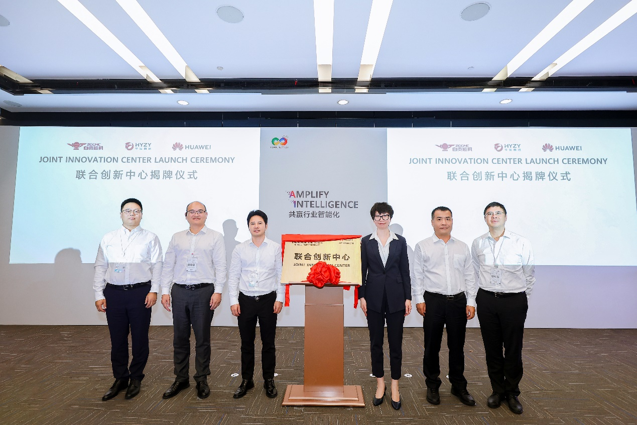 运机集团董事长吴友华,华为副总裁、油气矿山军团CEO韩硕为联合创新中心揭牌。运机集团总经理吴正华,运机集团常务副总经理、华运智远总经理许俊杰,华为油气矿山军团副总裁杨文池,华为油气矿山军团副总裁陈银绪出席本次揭牌仪式。