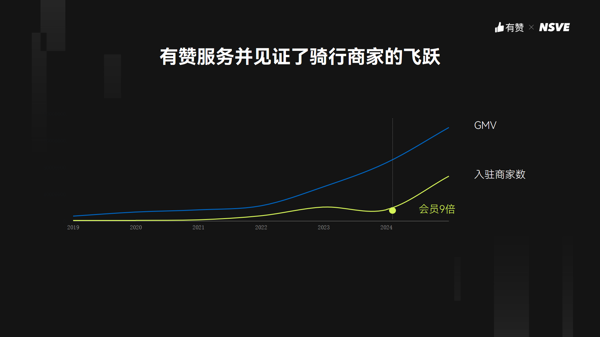 有赞作为头部商家服务公司,同样见证了骑行这一细分行业的潜力。有赞COO兼联席总裁浣昉在演讲中透露,2023年使用有赞的骑行商家数是2021年的10倍,GMV也增长了400%,今年预计骑行商家的GMV将破亿。更值得注意的是,有赞骑行商家今年的会员数是去年的9倍,以老客为主的会员运营和私域成交卓有成效。
