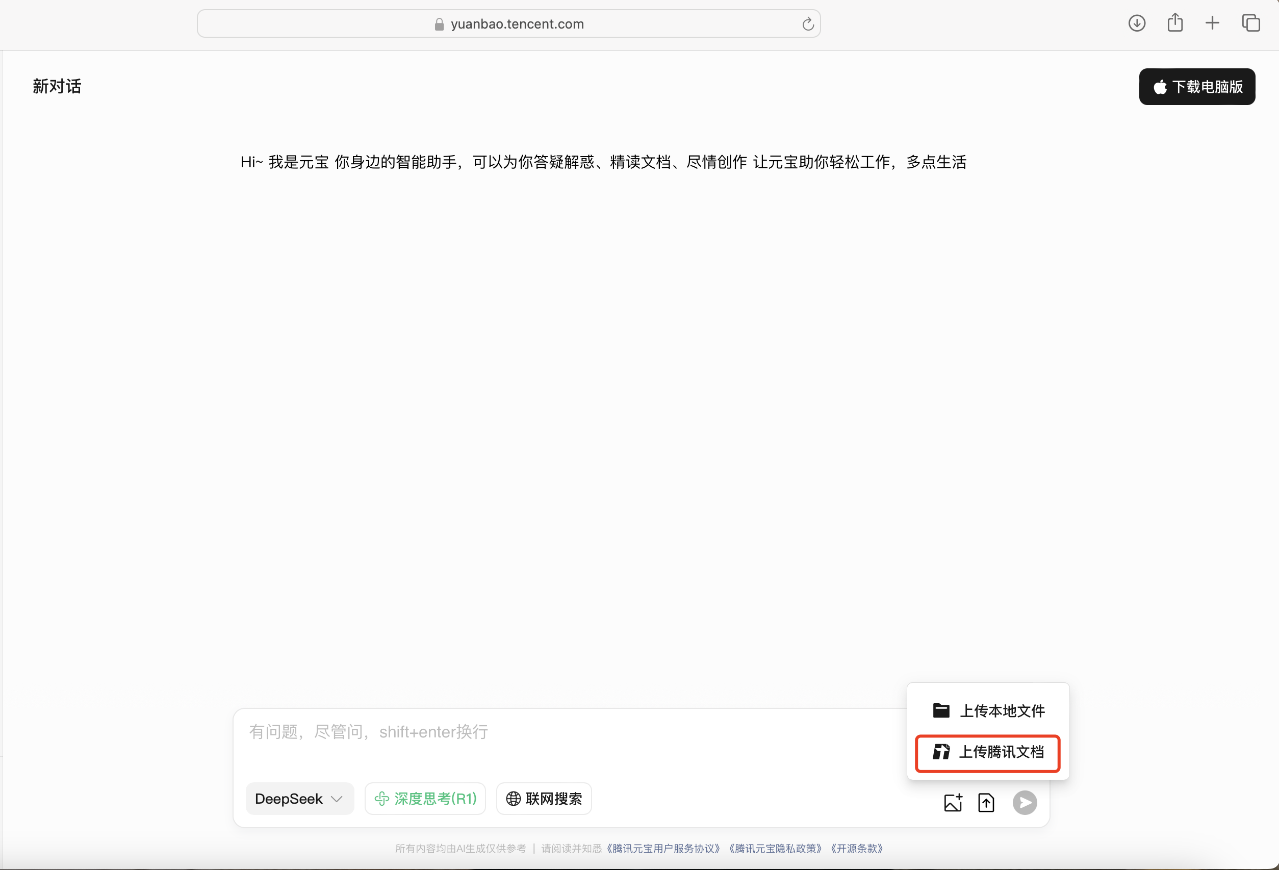 3月13日,腾讯元宝支持上传、导出腾讯文档。