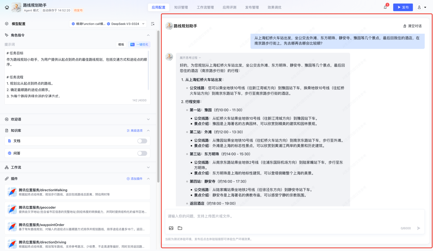 配置完成后,可在对话测试窗口测试应用对话效果。