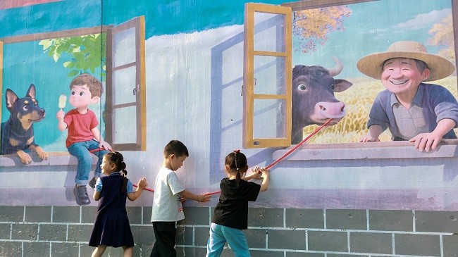 三家村的故事,始于“97后”女孩张桂芳的归来。2020年,24 岁的她响应号召回村,被高票选举为村长。面对破败房屋、累累负债和留守老人的困境,她另辟蹊径,用艺术彩绘开启破局之路——将“梵高的星空”泼向斑驳的墙壁,让“大鱼海棠”游过荒废的谷仓,把灰暗的村庄绘成鹤壁首个“彩虹村”。