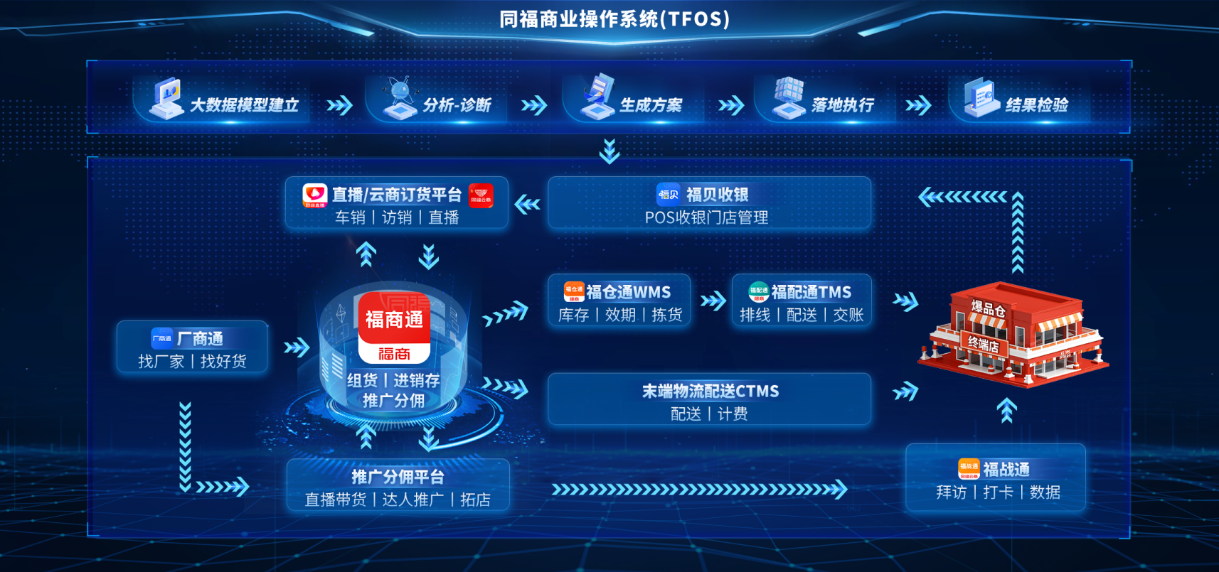 同福集团依托30余年深厚的实业根基,投资几十亿,由百名专家学者和数千名营销人员,历经近4年的探索与实践,精心打造出中国实体经济数智化平台——同福共享平台。平台将厂商、经销商、终端商、消费者紧密相连,创新打造商贸公司全链路转型模型,为县域商业体系每个环节叠加赋能,提升运营效率、降低经营成本,推动县域商贸体系实现共享共赢和高效有序竞争。