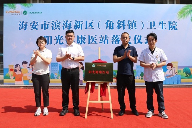 这一切,得益于阳光新能源“阳光健康医站”项目的落成。6月6日,阳光新能源首个“阳光健康医站”揭牌仪式在海安市滨海新区(角斜镇)卫生院隆重举行。该项目由阳光新能源捐资建成,全面升级卫生院及金港社区门诊部的医疗设备与配套设施,涵盖诊疗、收费、药房、放射等多个功能区域,显著提升了医疗服务能力和患者就医体验。